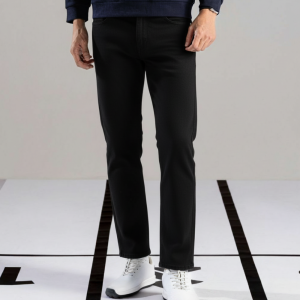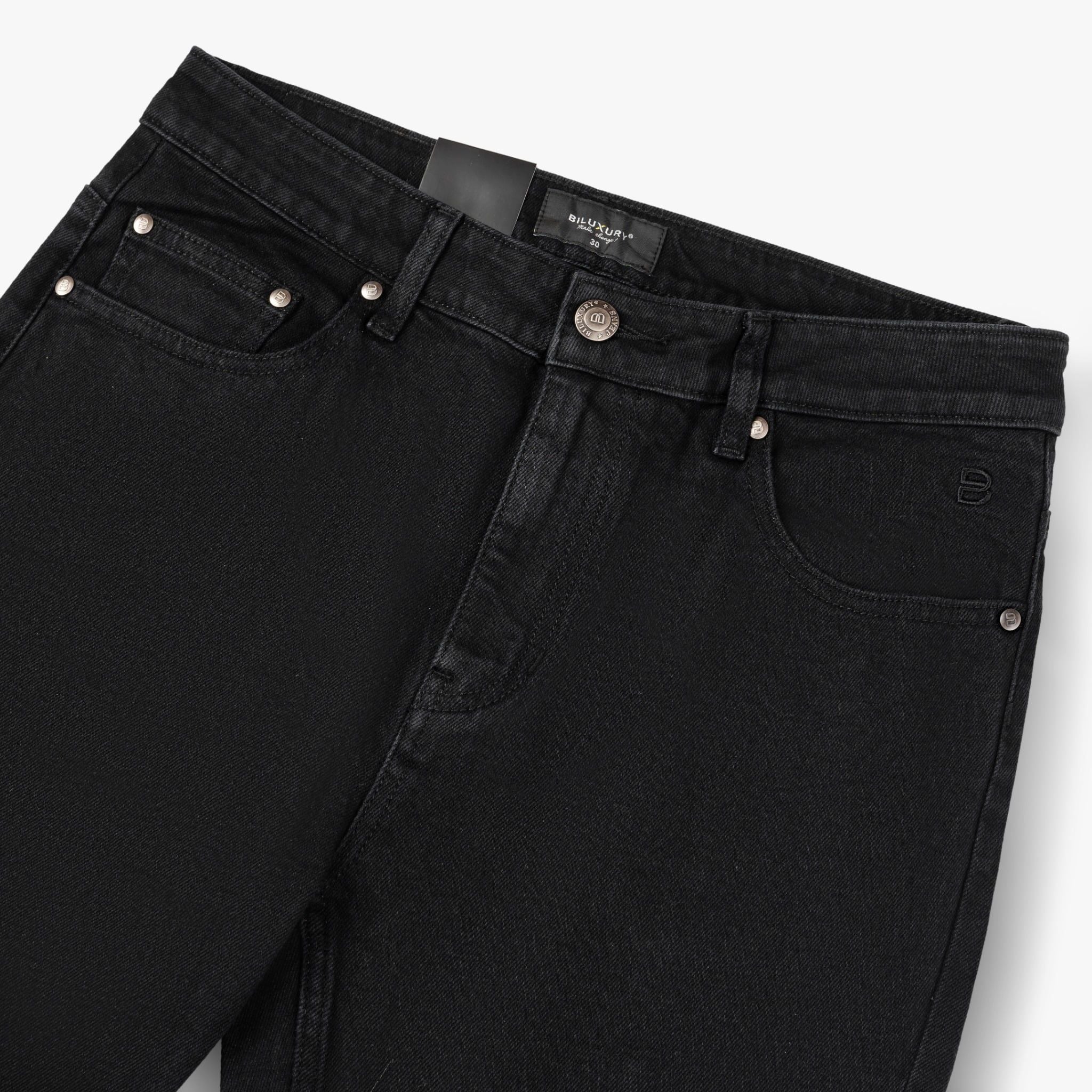 Thiết kế: Quần màu đen basic, điểm nhấn bằng những chiếc khuy nhỏ. Thiết kế cơ bản gồm 2 túi hàm ếch thân trước, 1 túi đồng hồ và 2 túi ấp sau tăng độ bền cơ học. Thêu logo B trên miệng túi.